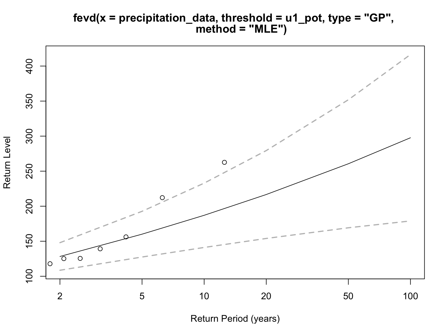 Both models are fitted to the same precipitation dataset to ensure a consistent comparison. The following sections will present the model fitting results for each approach and compare their estimates of return levels and risk metrics.